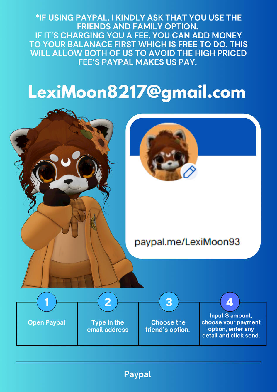 Please do not send funds through Ko-fi due to the high fee's sellers have to endure. Please use paypal or cashapp and follow instructions within images below.